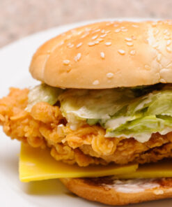 Juicy flavor packed minced chicken patty combined with lettuce and mayo, served with fries and coleslaw.