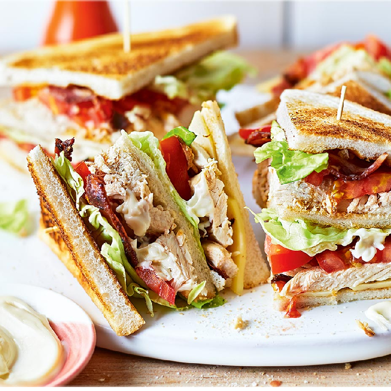Sandwich bread stuffed with julienne cut chicken, along with egg, cheese, lettuce, cucumber, tomatoes and more goodness.