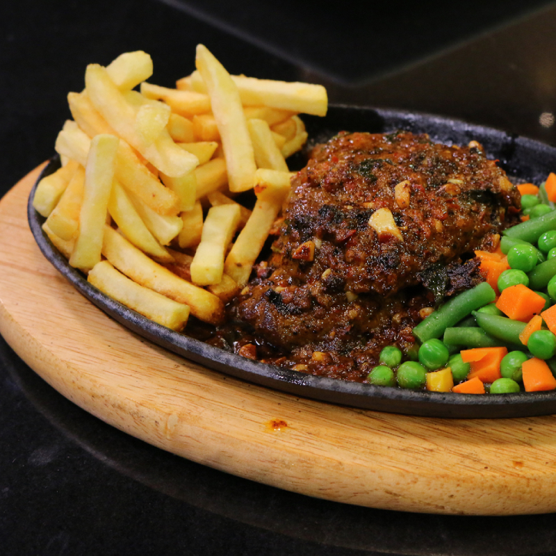 Beef fillet marinated in Moroccan inspired spice rubs and creamy based sauce served with sideline of your choice and vegetable on a sizzling platter.