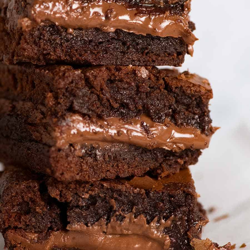 Gooey chocolate brownies with flavor of nutella in it.